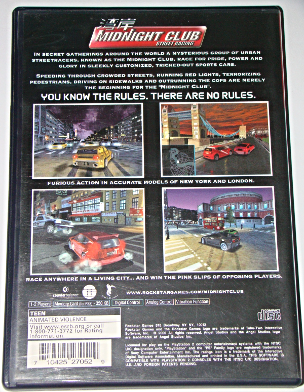 Playstation 2 - MIDNIGHT CLUB STREET RACING (Game and Manual)