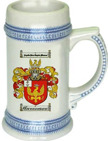 Greaveson Coat of Arms Stein / Family Crest Tankard Mug