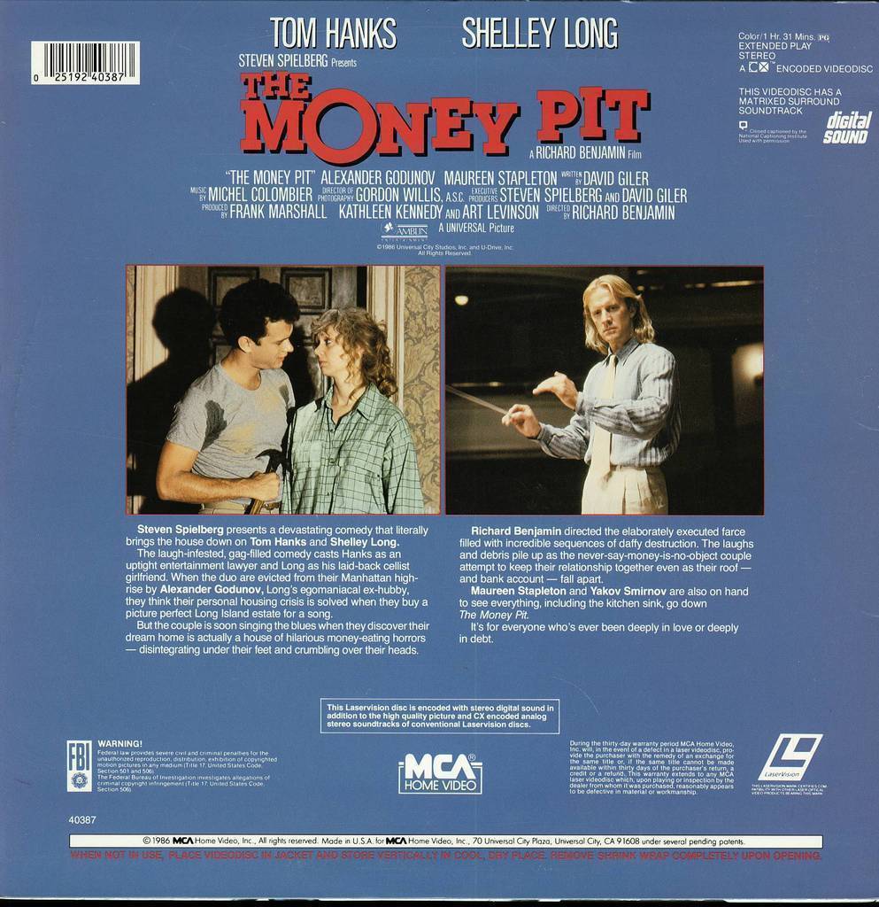 MONEY PIT SHELLY LONG TOM HANKS LASERDISC RARE