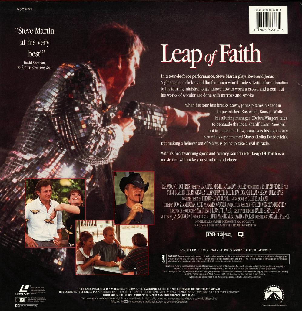 This is a previously viewed LASERDISC of the rare comedy drama classic LEAP OF FAITH, staring: