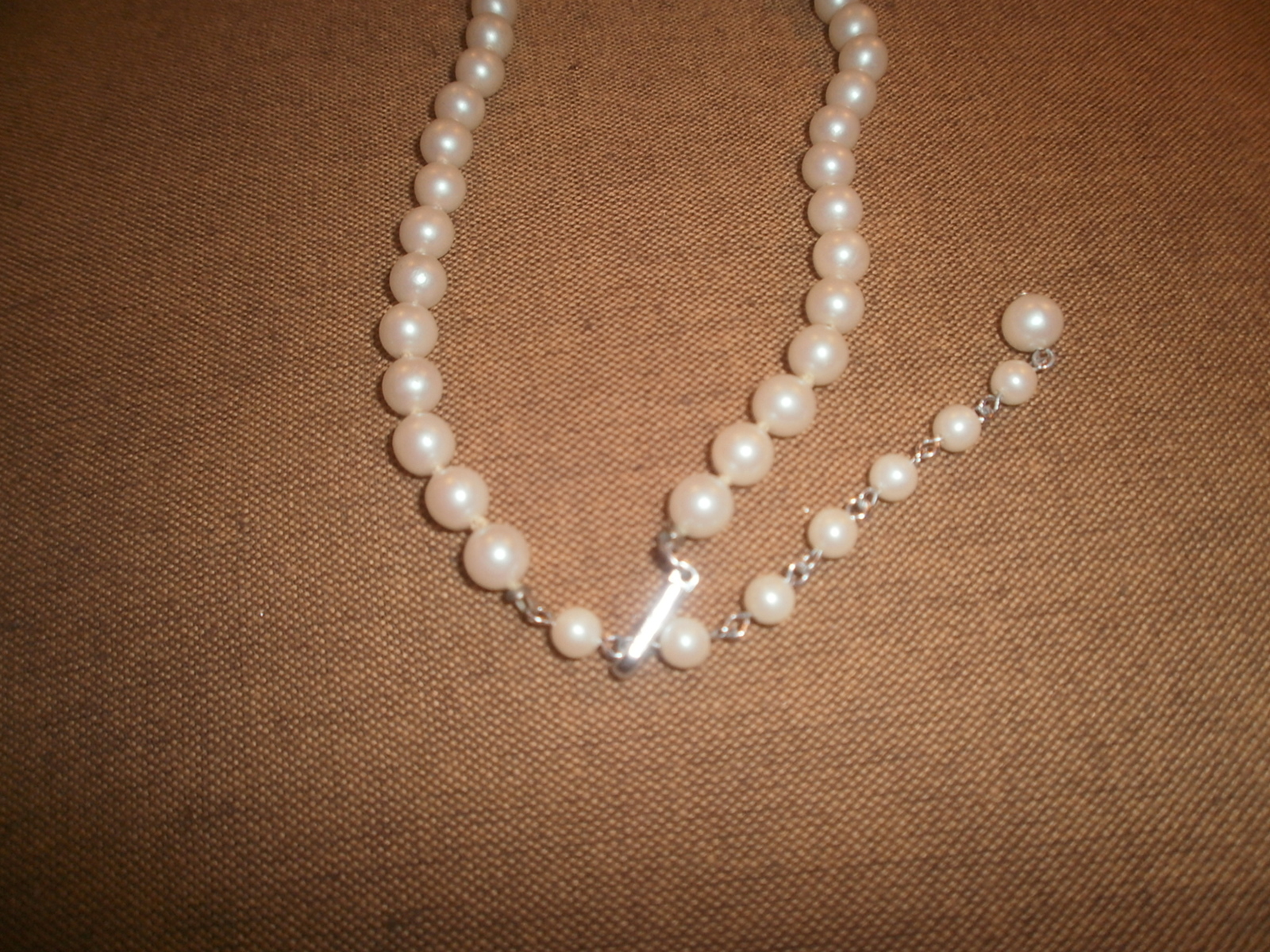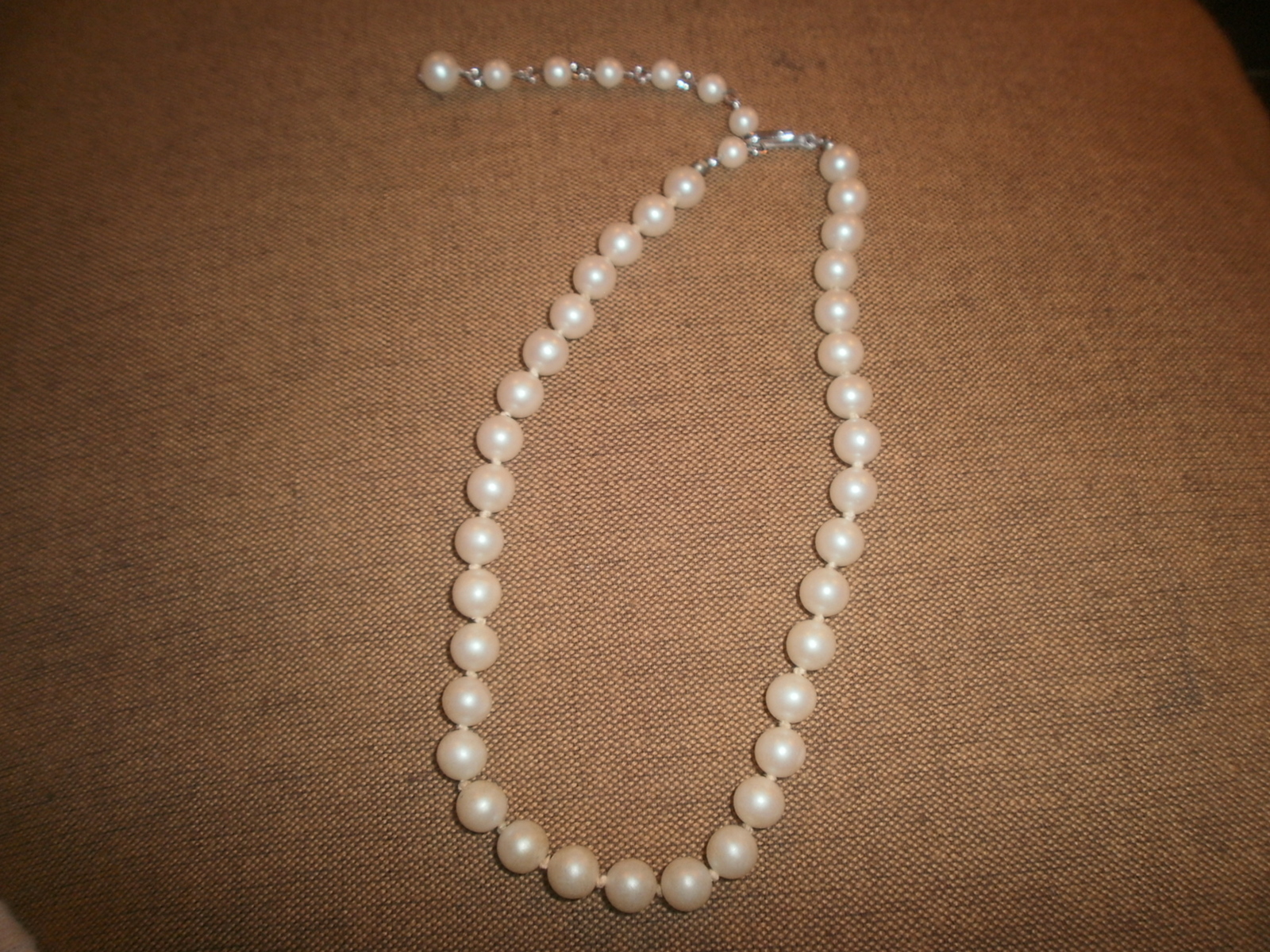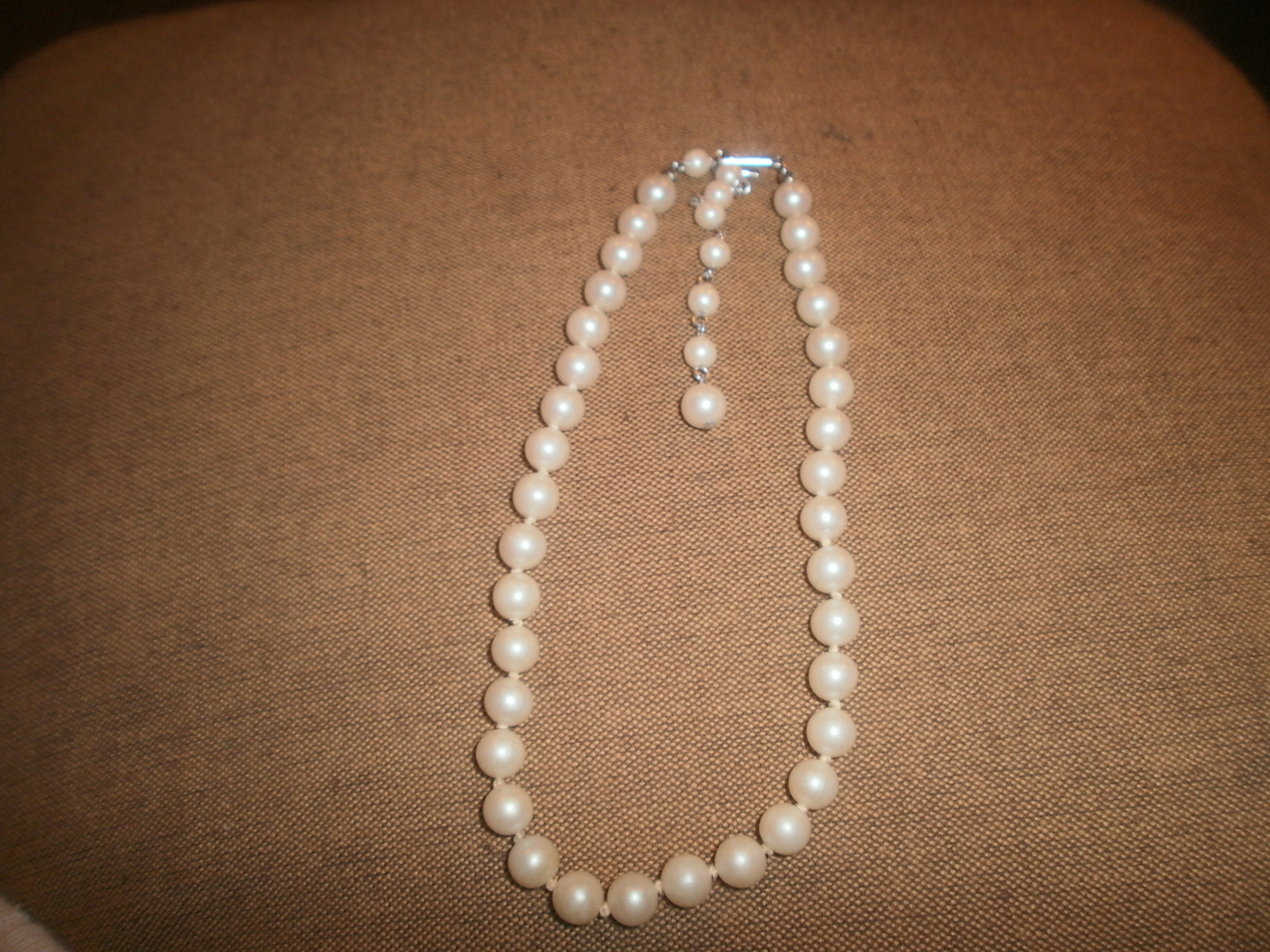 Vintage Faux Off White Pearl Choker Necklace , Knotted , Japan