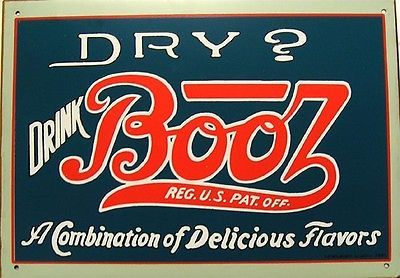 Drink Booz metal sign measures 14" wide by 10" tall.