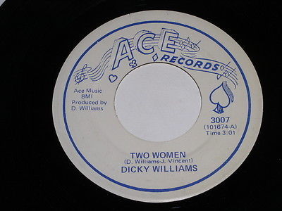 This is a 45 rpm phonograph record by Dicky Williams entitled, "Two Women". Flipside: "You Got A Good Thing Going". Record label: Ace 3007.