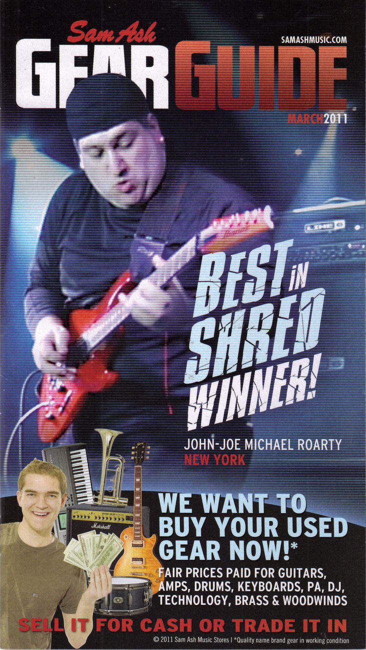 The March 2011 issue of Sam Ash Gear Guide featured on cover is JOHN-JOE MICHAEL ROARTY, New York, 2010 Best in Shred Guitar Competition Winner.