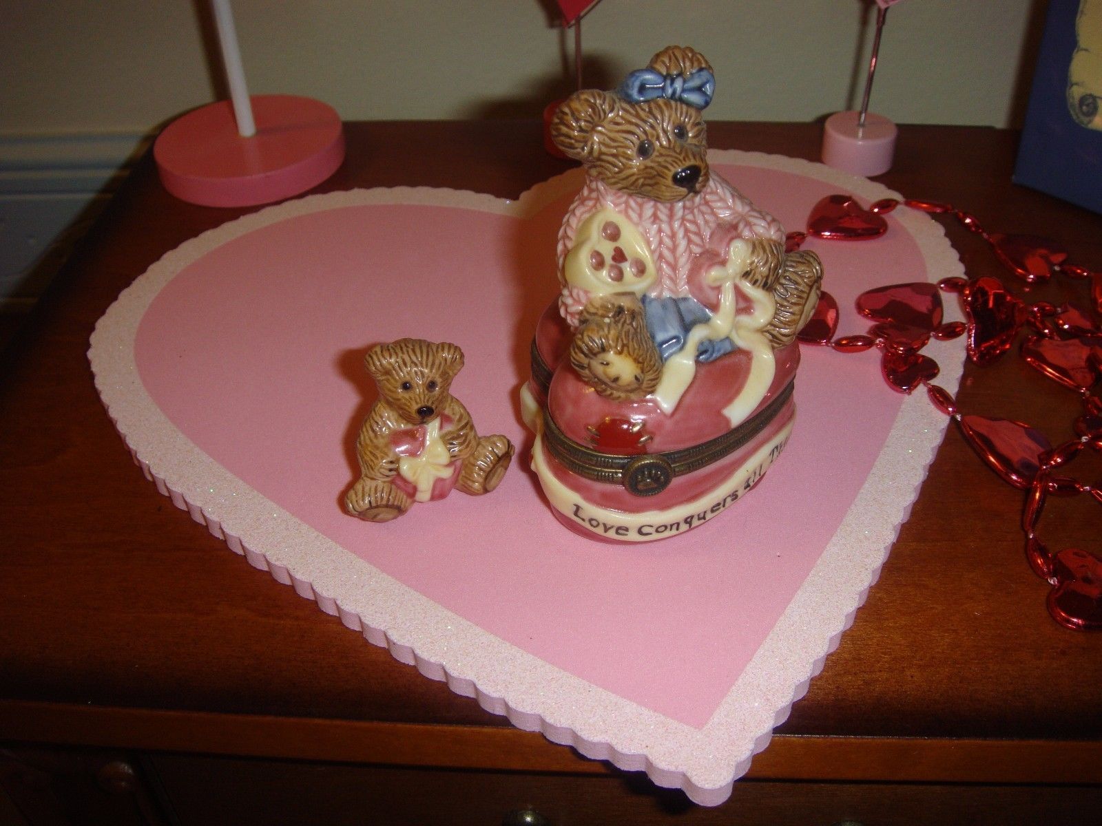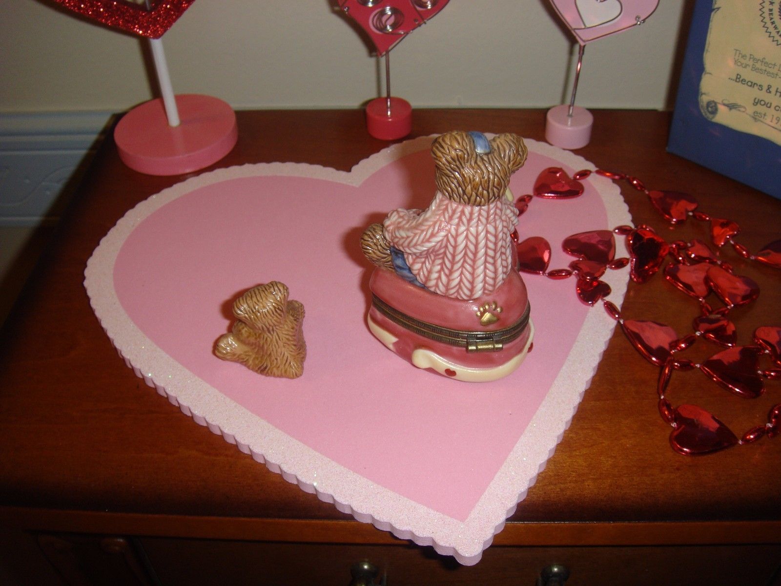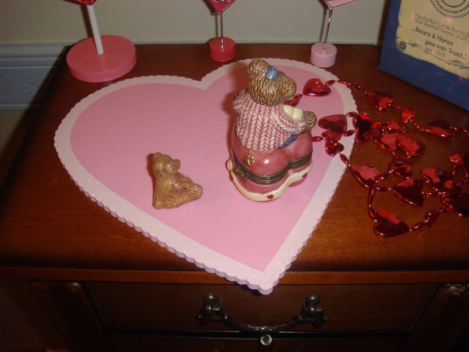 Bailey On Top A Pink Heart Holding Her Open Box Of Candies.