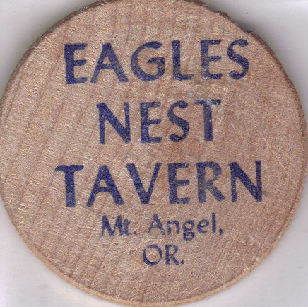 EAGLES NEST TAVERN Mt. Angel, Oregon Wooden Nickel Chip