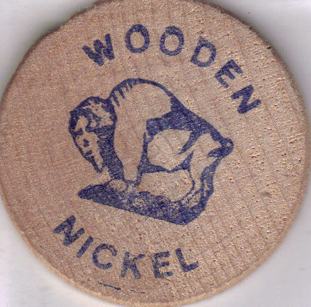 "WOODEN NICKEL" stamped at the flip side of chip.
