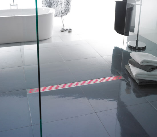 A linear shower channel drain, such as QuARTz by ACO, provide a number of advantages over circular point drains. First of all, flexibility in positioning allows you to place the shower channel drain in the center of a shower or other wet area, against the walls, or let it act as the threshold. As a threshold, it becomes the water barrier that keeps dry zones dry. This allows for more of an open floor plan and traffic flow because it allows the shower or other wet area to be open, without the need of a door.