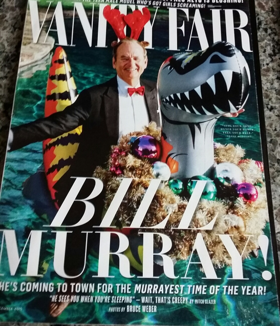 Bill Murray is front cover of this issue of Vanity Fair magazine December 2015 in his silliest and most serious Christmas special as only he can pull off.
