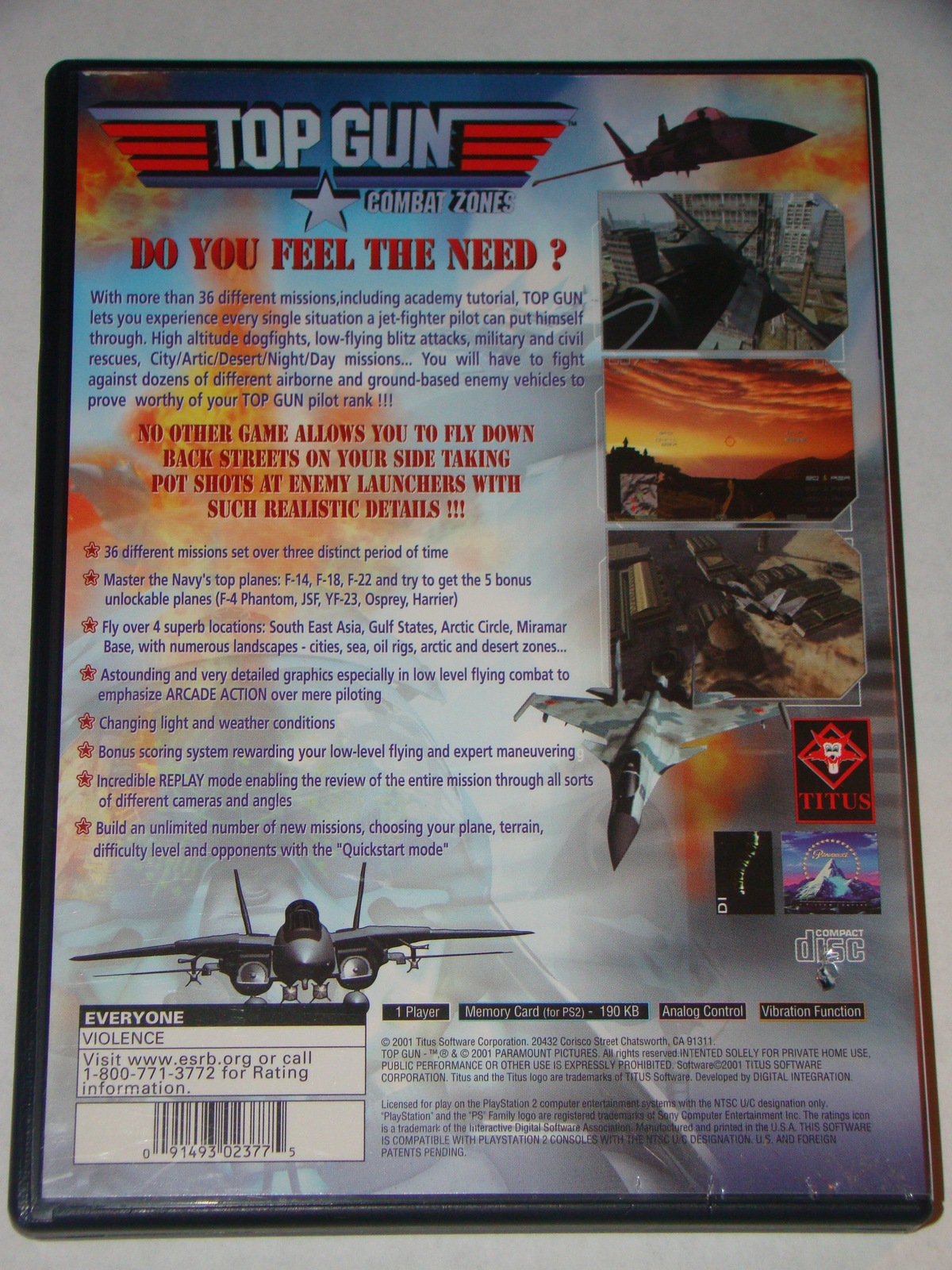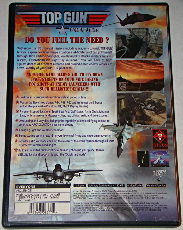 Item: Playstation 2 - TITUS - TOP GUN COMBAT ZONES (Complete with Manual)