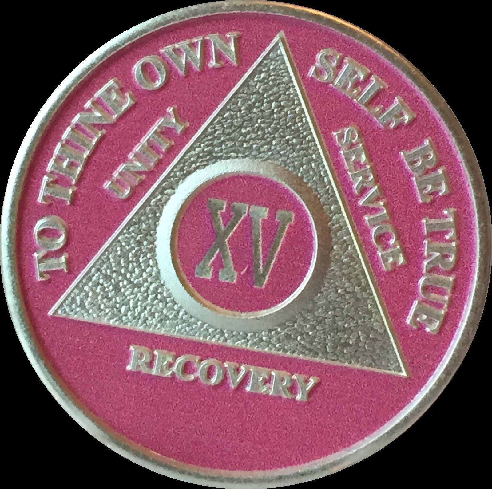 Pink & Silver Plated 15 Year AA Chip Alcoholics Anonymous Medallion Coin