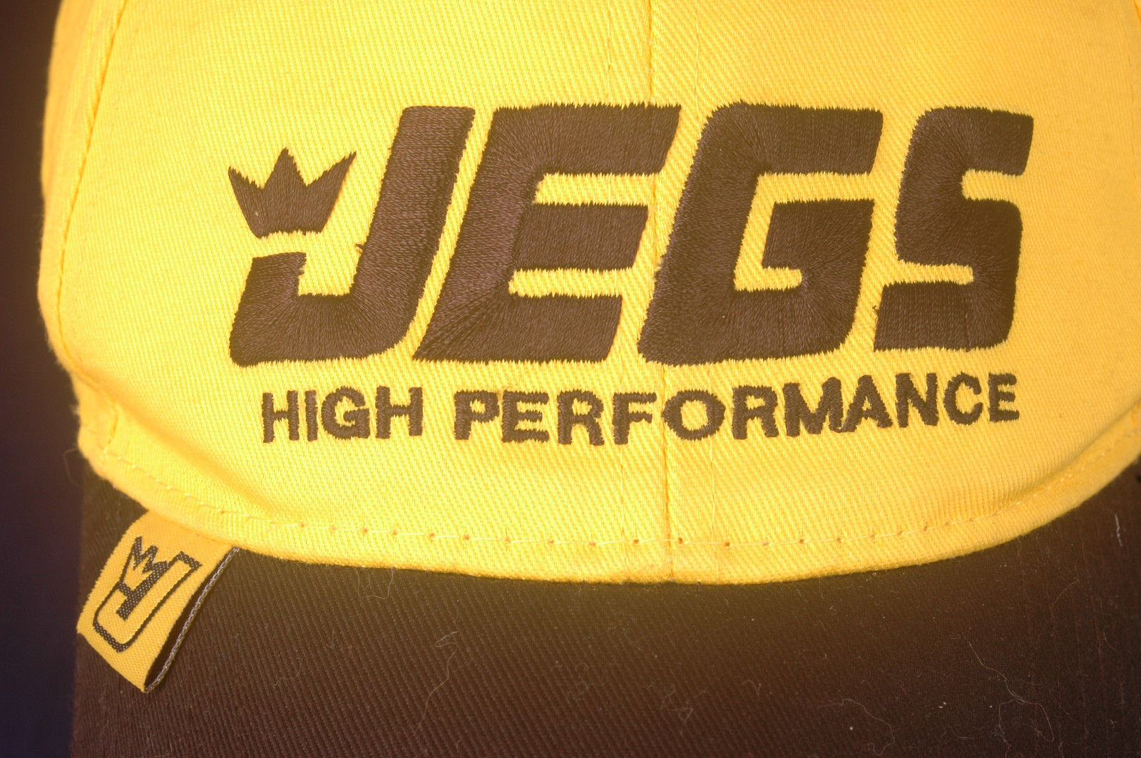 VTG JEGS Hat-Adjustable Velcro Strap-Cap-Yellow/Black-High Performance Headgear