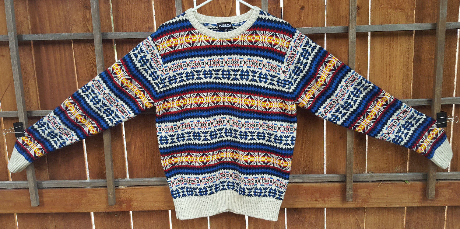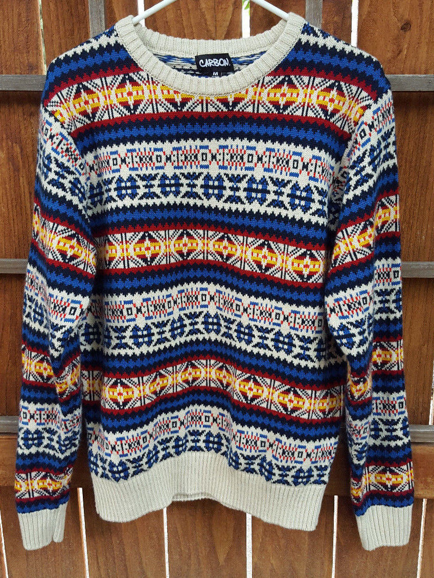 Carbon Sweater-Acrylic-M-Colorful-Mens-Geometric-Blue Red Yellow-Ugly Winter