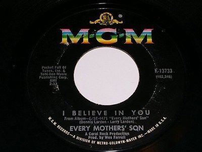 This is the original, vintage 45 rpm release of Every Mothers' Son's, "I Believe In You". Flipside: "Come On Down To My Boat". Record label MGM K-13733.