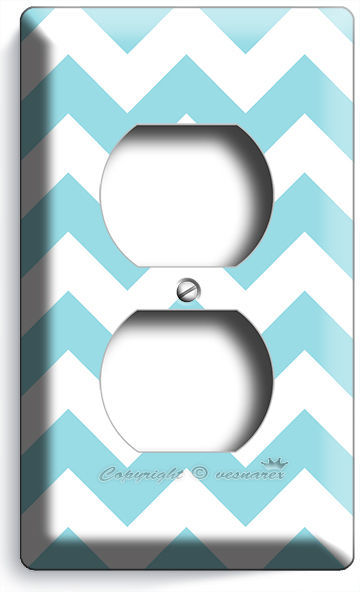 CHEVRON LITE BLUE PASTEL LINES ELECTRICAL OUTLET WALL PLATE COVER MODERN DECOR