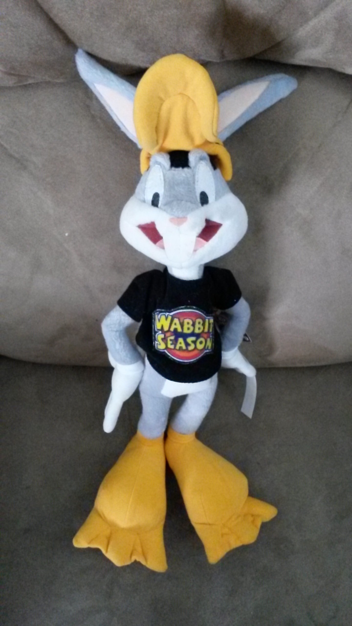 You are bidding/buying a Looney Tunes - Bugs Bunny - Wabbit Season wearing Daffy Costume plush!