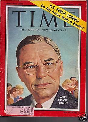 You are bidding on a Time Magazine James Bryant Conant September 14, 1959 Complete no missing pages.
