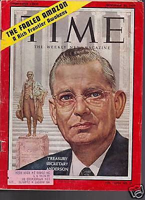 You are bidding on a Time Magazine Treasury Secretary Anderson November 23, 1959 Complete no missing pages.