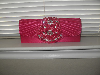 New Pink Evening/ Clutch Bag With Rhinestones And Beads. For Hands Free Convenience, This Bag Can Be Slung Across The Shoulders Too.