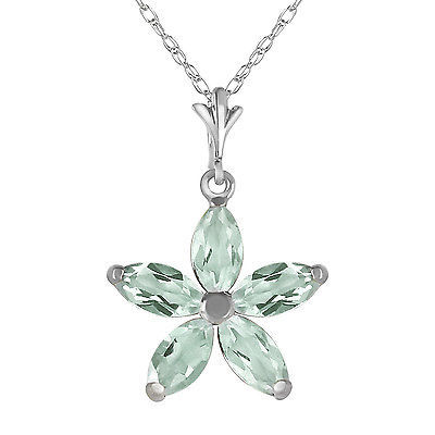 1.4 CTW 14K Solid White gold fine Shall Be Again Green Amethyst Necklace 20"