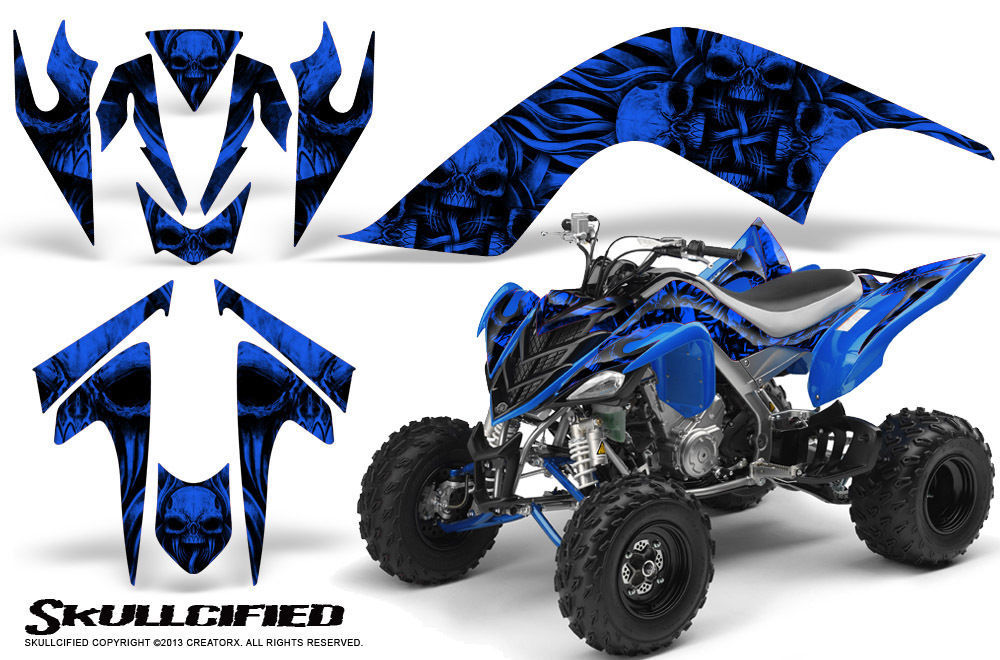 YAMAHA RAPTOR 700 06-12 GRAPHICS KIT CREATORX DECALS SKULLCIFIED BLUE
