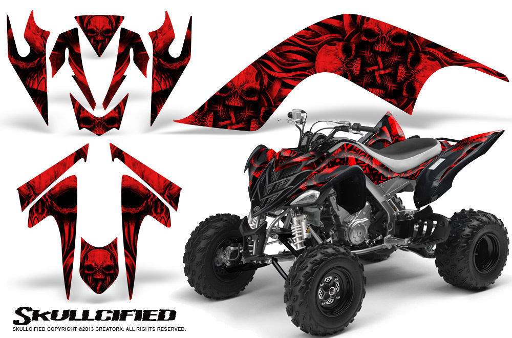 YAMAHA RAPTOR 700 06-12 GRAPHICS KIT CREATORX DECALS SKULLCIFIED RED BLACK