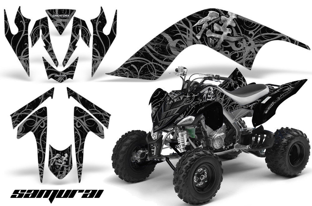 YAMAHA RAPTOR 700 06-12 GRAPHICS KIT CREATORX DECALS SAMURAI SILVER BLACK