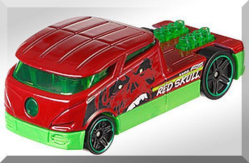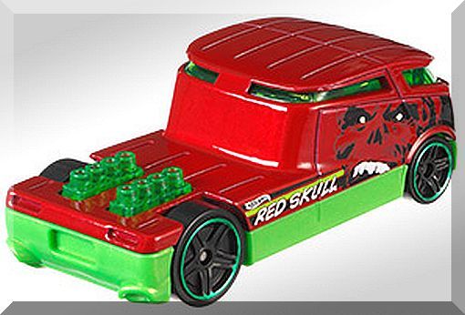 Description: Metallic Dark Red, W/Green Interior, Large black, dark red white skull graphics on sides of cab. Green stripe on sides with white Hot Wheels logo "Red Skull.", Green Thailand Base, w/BlkPR5's, Walmart Exclusive. 042916-042916P-D11