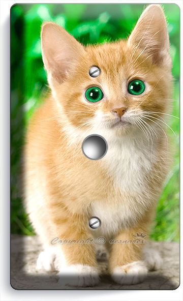 CUTE GREEN EYES KITTEN KITTY CAT LIGHT DIMMER CABLE WALL PLATE COVER HOME DECOR