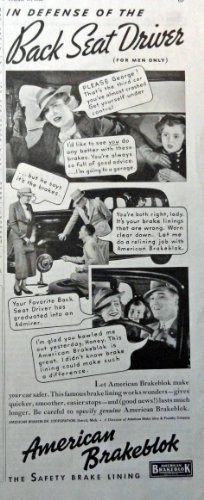 Ameican Brakeblok Brake Linning, 30's B&W Illustration, 5 1/2" x 13" Print Ad...