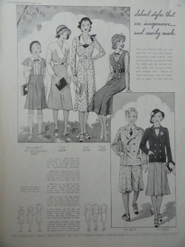 Fashion Page, 30's B&W Illustration, Print Ad. 10 1/2" x 13 1/2" (school styl...