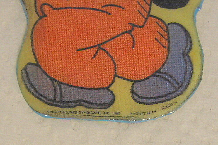 This is a pin featuring Wimpy from Popeye the Sailor. It appears to be hand made. The cartoon has language underneath indicating King Features Syndicate, Inc. which was owned by the Hurst Company. A date is shown that is possible 1940. Other info cannot be read. Wimpy is eating a hamburger which someone probably bought for him. He was famous for saying: I'll gladly pay you Tuesday for a hamburger today. This Wimpy from Popeye the Sailor Pin weighs in at 1/4 oz.