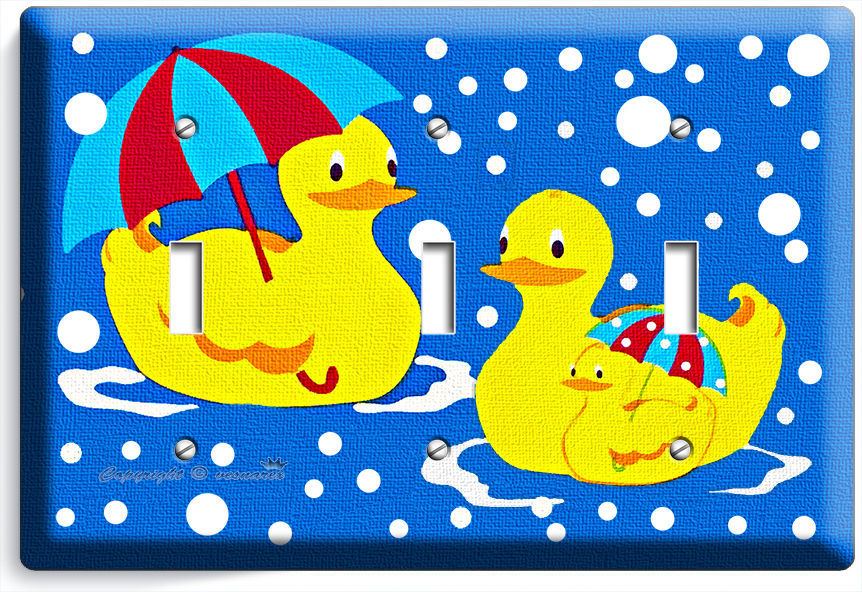 RUBBER DUCK SWIMMING UMBRELLA DUCK TRIPLE LIGHT SWITCH WALL PLATE COVER BATHROOM