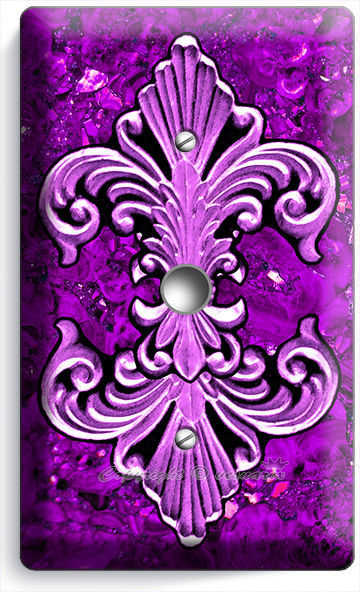 FLEUR DE LIS PURPLE MARBLE LIGHT DIMMER CABLE WALL PLATE WALL PLATE COVER DECOR