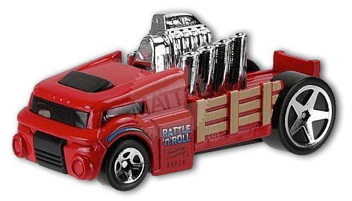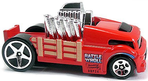 Description: Red w/No Interior; Blackout windows; Tan wood bed sides; Blue, Black White design over front wheels; White, Blue Black 'Rattle 'n' Roll' Black 'Trucking Company' on cab w/Black 'DHP24'; Black Malaysia base w/Chr5SP's. 060816-060816P-D12