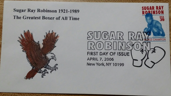 This is an unused, in mint condition of Sugar Ray Robinson First Day of Cover. Issued on April 7, 2006, New York, NY 10199.