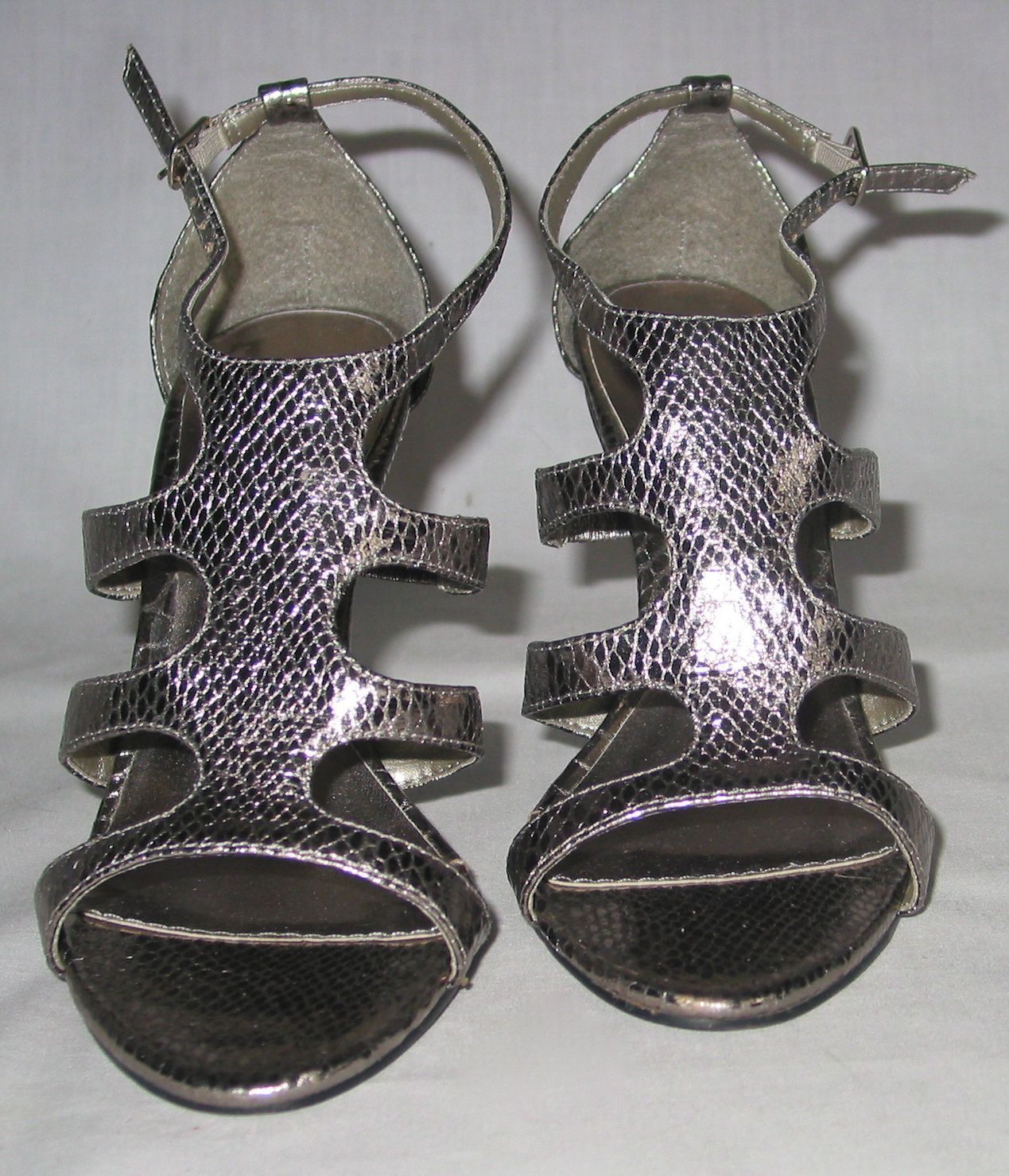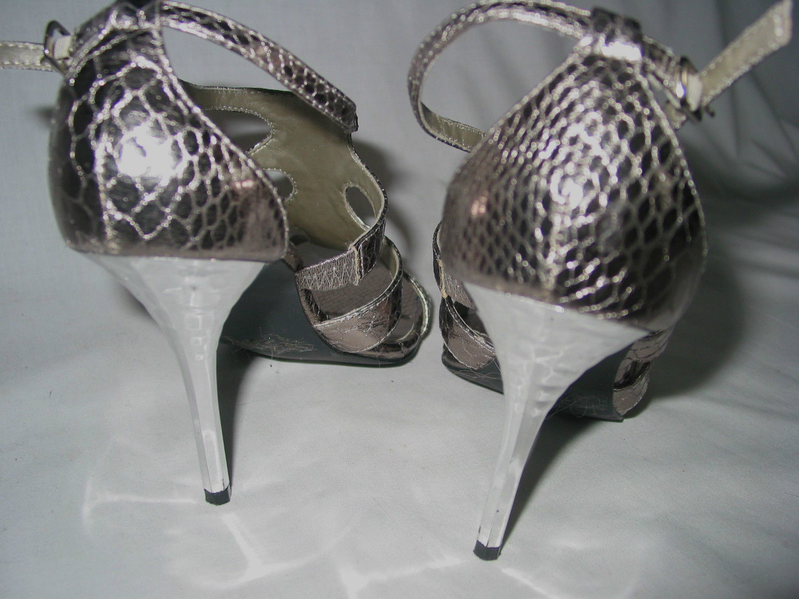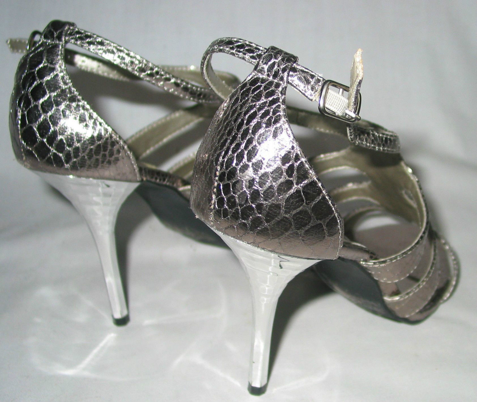Charlotte Russe silver snake stiletto sandals t strap womens 7.5 minimal use