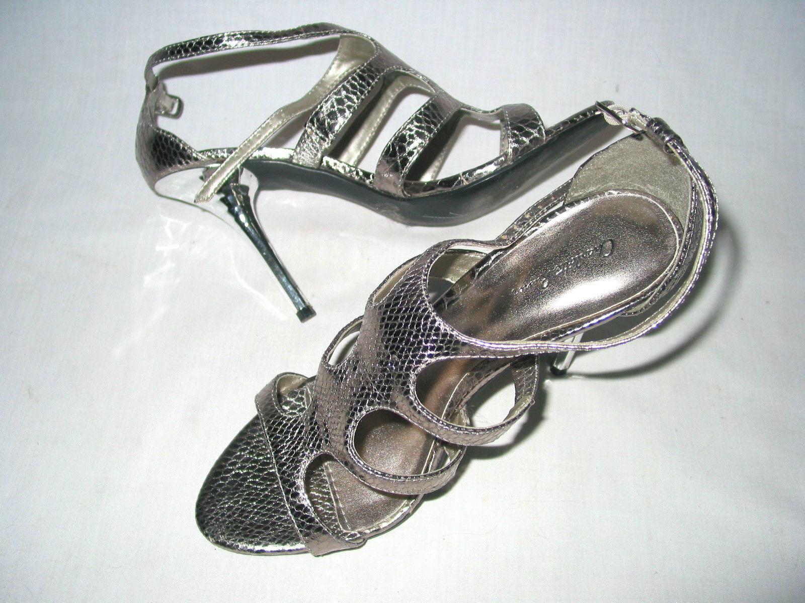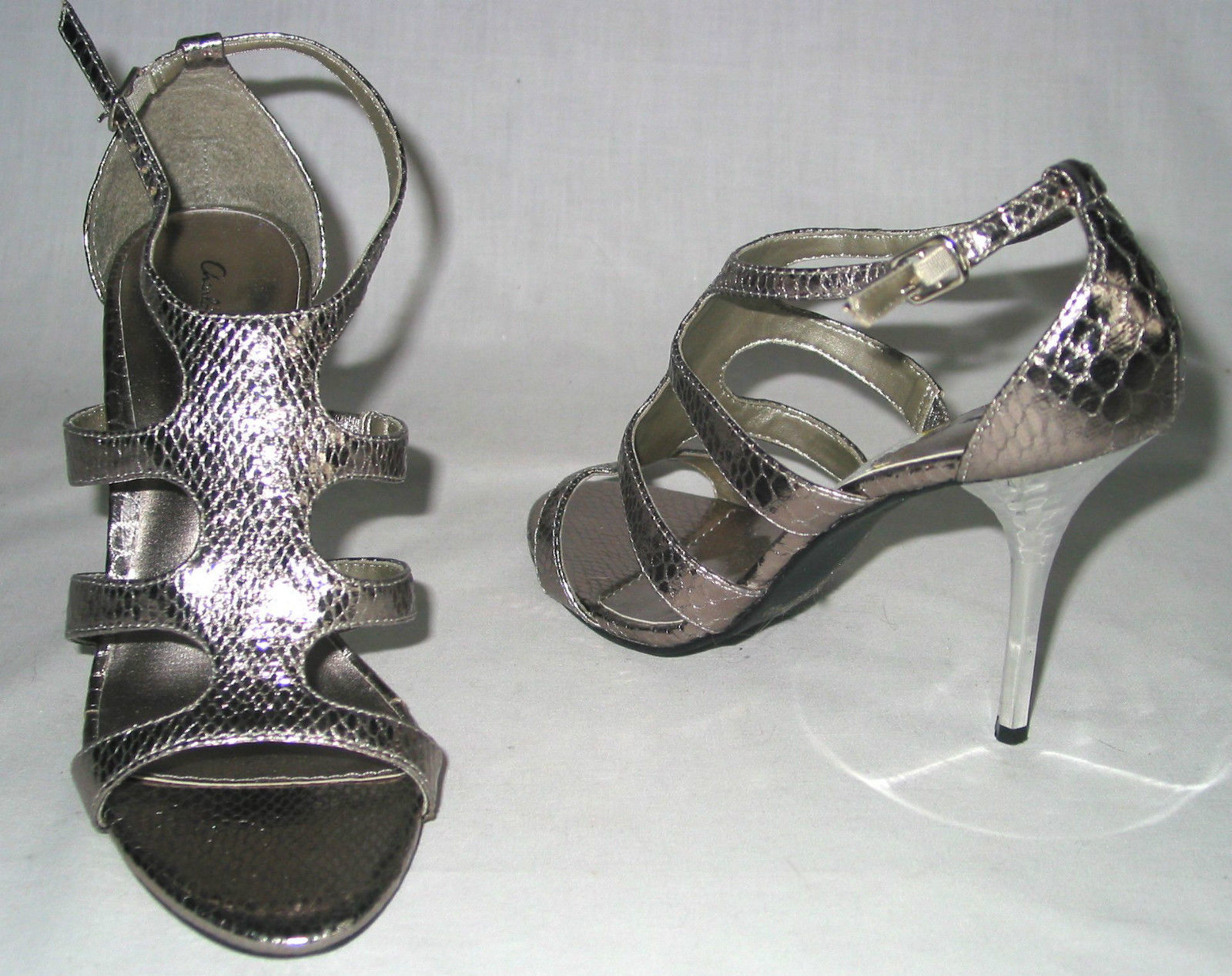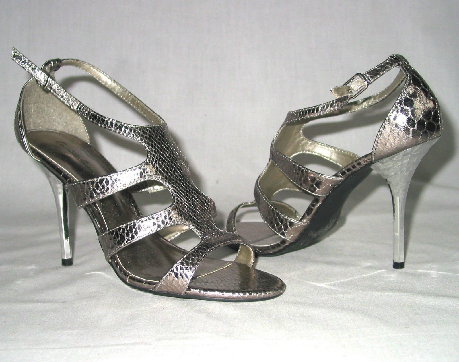 Charlotte Russe silver snake stiletto sandals t strap womens 7.5 minimal use