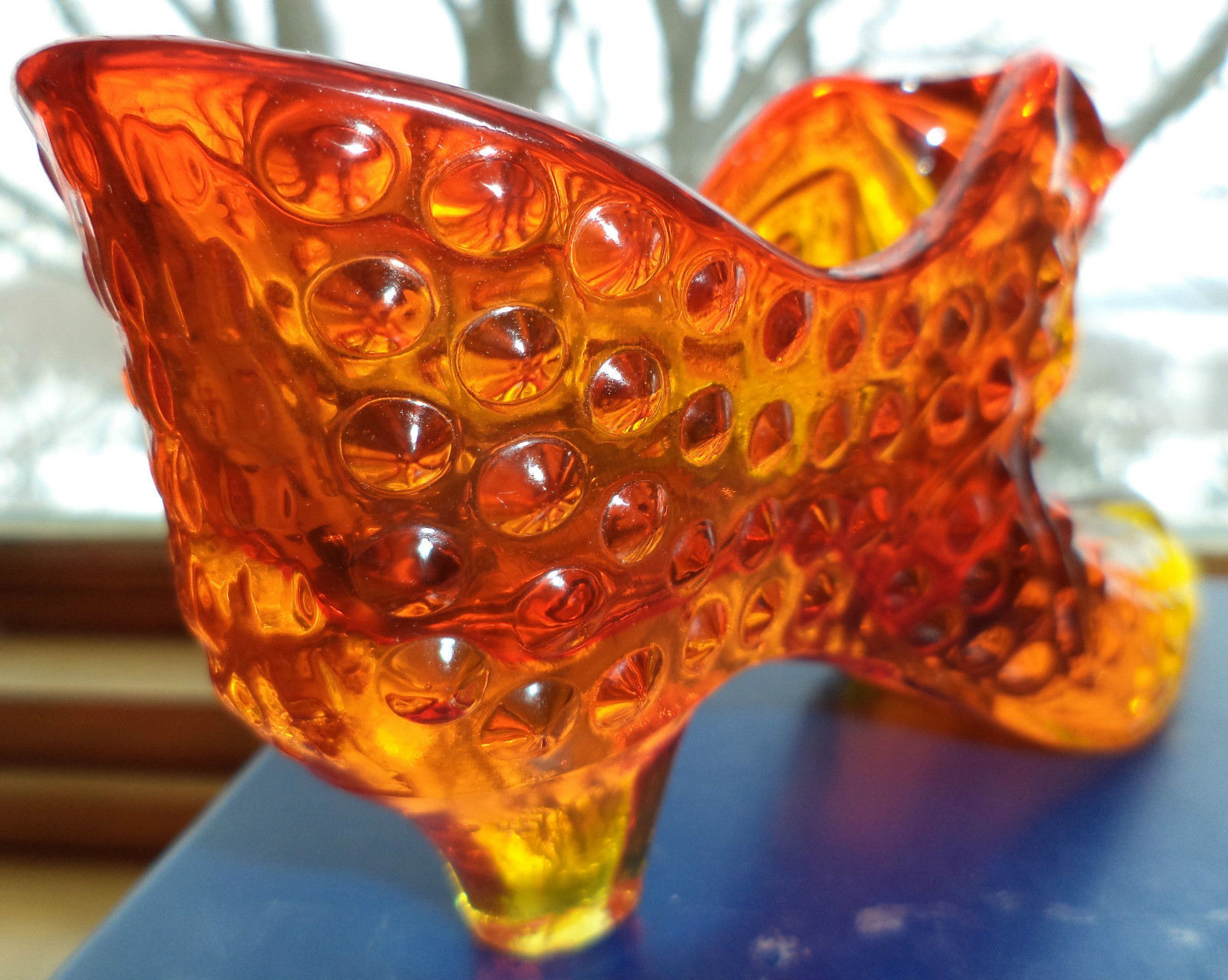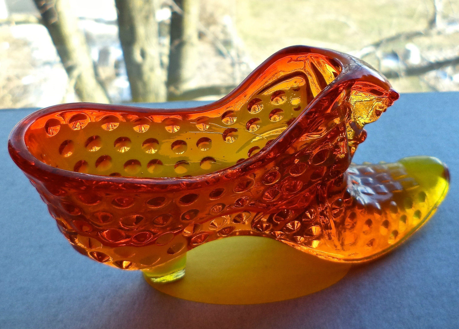 Fenton Hobnail CAT Glass Slipper Victorian Shoe Collectible Orangina Amber Large