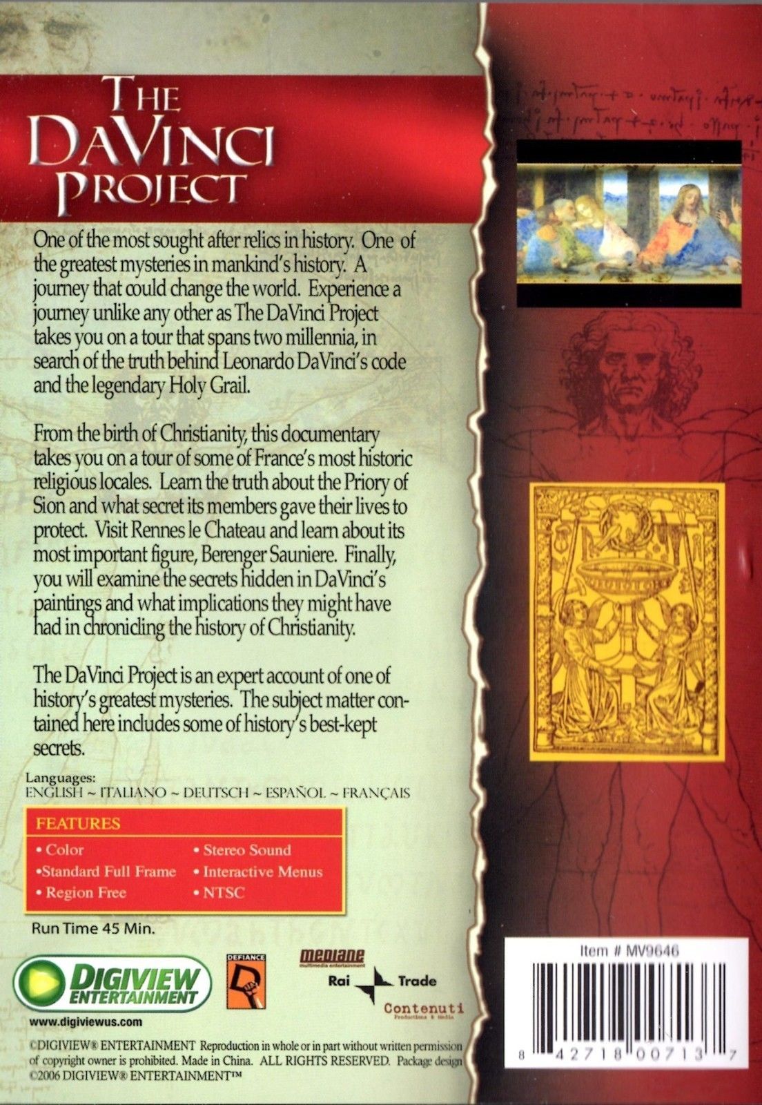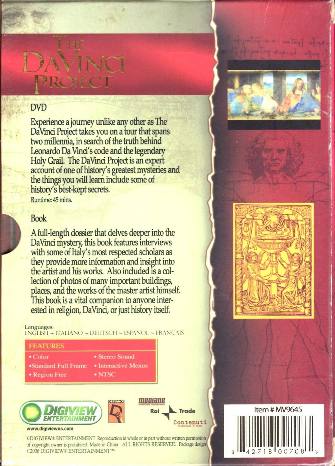 This is a previously viewed DVD of the rare documentary classic THE DA VINCI PROJECT, staring: