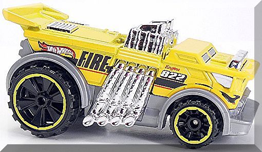 Description: Yellow, w/Chrome engine windows, Black Red stripes, HW logo, 'Fire', 'Engine 822' on sides, Black Malaysia Base, w/BlkOR6SP's. 062516-062516P-D13