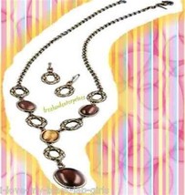 Necklace, Earring Simple Glam "Y" BROWN Gift Set ~ NEW Boxed