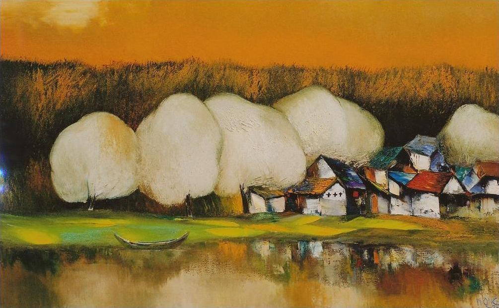 Afternoon Fragrance of Smoke, 24 x 39 Vietnamese hand painted oil painting