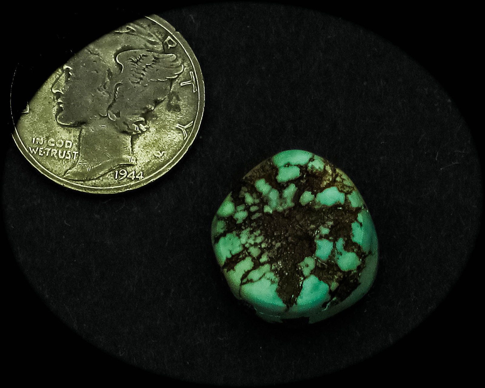 Our stones come from a private collection that we have had for over 48 years and some of the last great stones left available They have been high graded and personally cut and polished by us. Each stone dictates the piece you will build around it. We have opened up our vault so these beauties can be shared. The photo you see is the actual stone you will be receiving. This stone comes from out of Arizona's Kingman Mine. It has beautiful dark matrix, runs a cool mint green, and is ideal for setting in gold or silver. This incredible cabochon weighs 12.0 total cwt. and measures 14 X 15 X 6.5 mm deep. Stones are backed, cut and polished, ready to set. Ships in 2 business days. Contact Seller for other Shipping Options.
