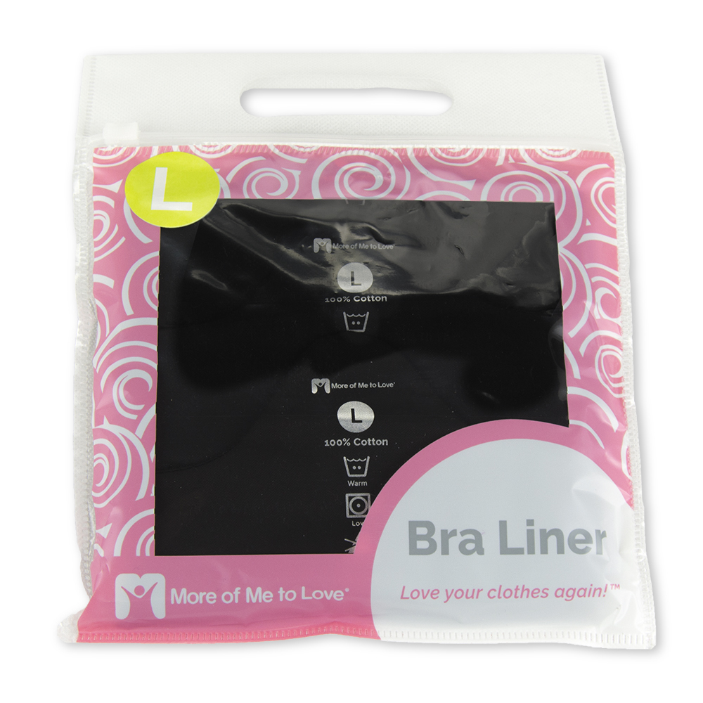 The More of Me to Love Bra Liner is the premier bra liner and part of the "Love Your Clothes Again" line. This incredible bra liner is top quality, made of cotton, and is comfortable and machine washable. The liner is held in place by the tension of the bra or the weight of the breasts, and it wicks sweat, prevents irritation and chaffing and makes wearing bras a far more comfortable experience.