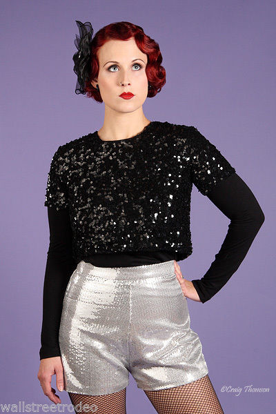 Broad Minded Clothing Sequin High Waist Burlesque Pinup Shorts Hot Pants VLV L