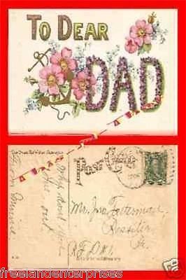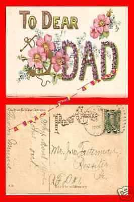 Post Card 00 To Dear Dad Embossed Postcard 1908 -1 Cent Stamp