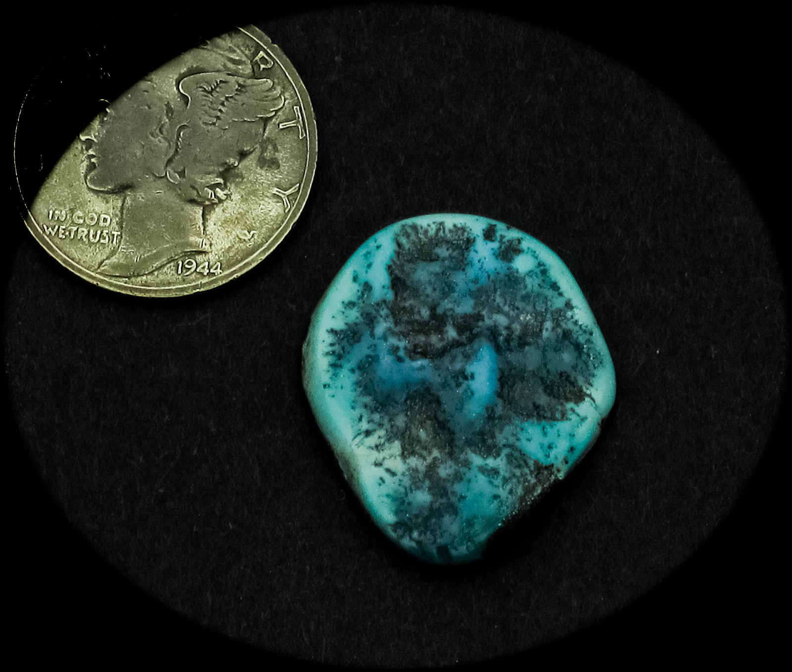 Our stones come from a private collection that we have had for over 48 years and some of the last great stones left available They have been high graded and personally cut and polished by us. Each stone dictates the piece you will build around it. We have opened up our vault so these beauties can be shared. The photo you see is the actual stone you will be receiving. This stone comes from out of Arizona's, Kingman Mine. It has beautiful classic black matrix, runs a rich deep blue, and is ideal for setting in gold or silver. This incredible cabochon weighs 8.0 total cwt. and measures 18 X 21 mm. Stones are backed, cut and polished, ready to set. Ships in 2 business days. Contact Seller for other Shipping Options.