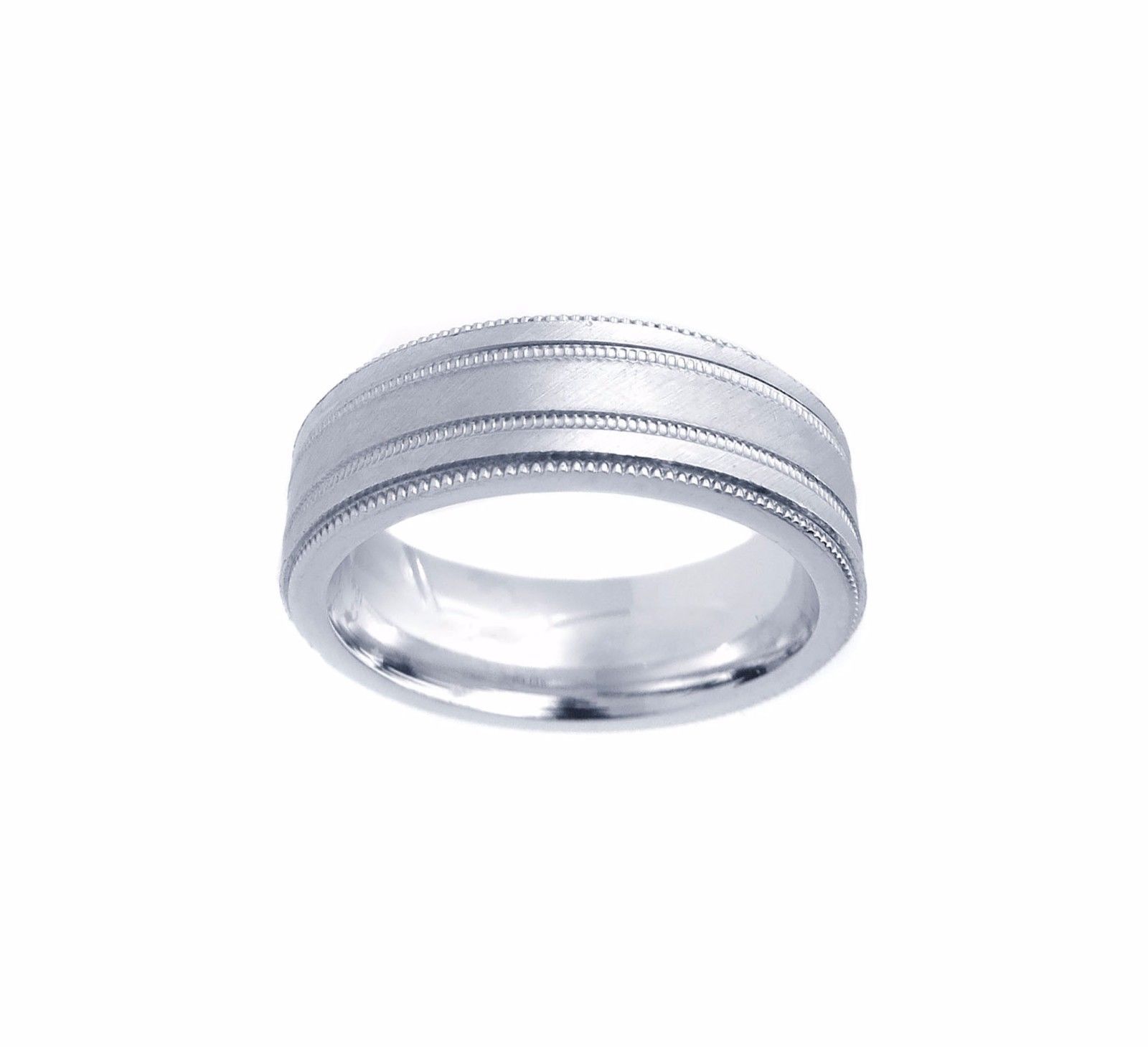 Here we have a beautiful 14k White Gold Satin Finish Wedding Band with Four Rows of Ridges.