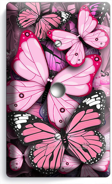 PINK BUTTERFLIES LIGHT DIMMER CABLE WALL PLATE BABY GIRL ROOM INFANT NURSERY ART